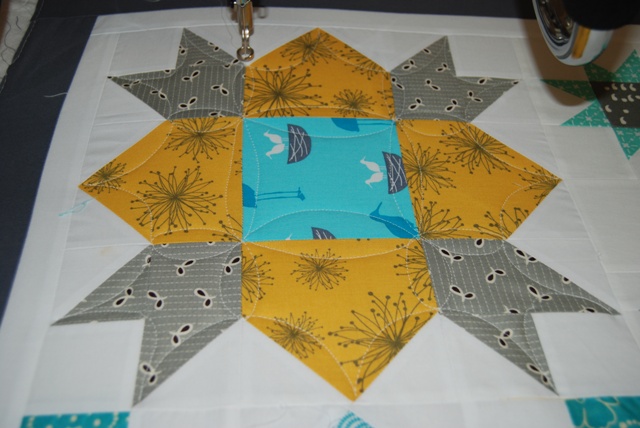 I have a doctor’s appointment today and won’t be able to do much more quilting, but I wanted to at least get this design in. I may still do something in the background of the block. This quilt is a sampler block quilt and now it will be a free motion quilt sampler too!