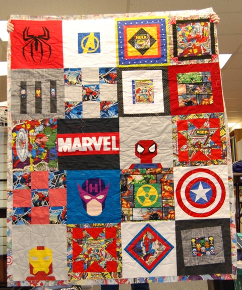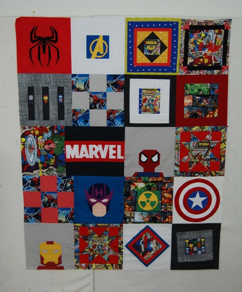 Fabulous! I could see the binding from the wrong side in that second picture, and that’s going to be perfect. I love the Captain America block – he’s probably my favorite, though I’m not above watching any of them … or the DC superheroes either! =) In fact, thanks to my son’s Hulu, I DO watch them all, and the movies I catch at the $2.50 theater. I’m a sucker for superheroes, and Marvel has done an outstanding job of all of their movies, and the pacing and alternating from one to another. Never enough to fill me up, but …. =) Your ladies did you proud on those blocks!
