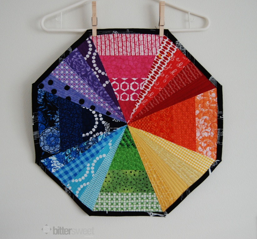 Through The Prism - https://www.clone.sewbittersweetdesigns.comThis pattern was originally designed for a friend in my birthday club but I fell in love with the design and decided I needed one for myself, then I ended up making a third for another swap! The pattern is fast and easy requiring small scraps for each rainbow section.