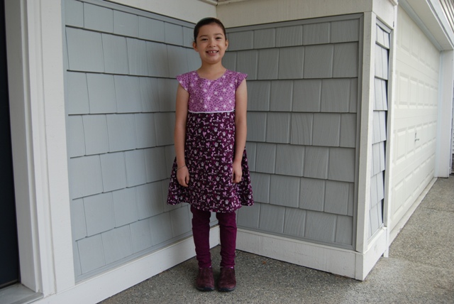 Dress information – Fabric is House of Hoppington by Violet Craft and the pattern is by Simplicity. It is the same pattern that she picked out last year except this year she wanted the version with the cap sleeves.