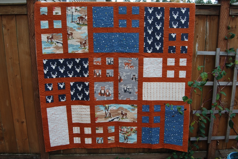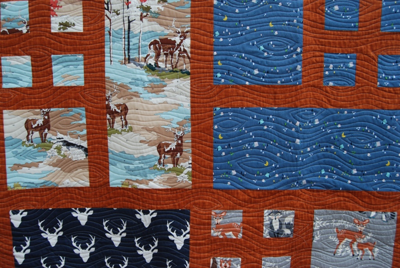 Last month I had the privilege of quilting a gorgeous Patio Quilt – pattern can be found here on Happy Zombie’s blog – for my guild mate and friend, Tina. She made a gorgeous boy version of the quilt and we both agreed that it was screaming for some wood grain quilting.